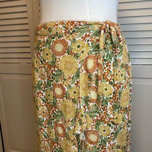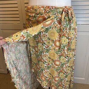 CYNTHIA ROWLEY FLORAL WRAP MIDI ASYMMETRICAL VISCOSE SKIRT