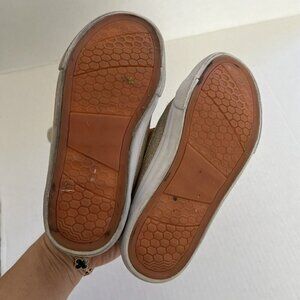 Elevate your little girl's athletic style with these beautiful Cynthia Rowley Hoop and Loop sneakers in size 12. The glittery gold design with a floral pattern adds a touch of fun and femininity to any outfit. The hook and loop closure ensures a secure fit while the rubber cleat provides excellent traction. Perfect for any active girl, these sneakers are a must-have for any young athlete or fashionista.