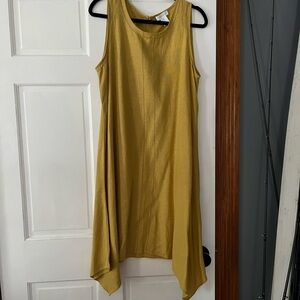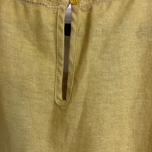 Comes from a smoke free pet friendly home , dress is mustard yellow and has minute cutout on neckline and down the front , linen mix swing sheath
