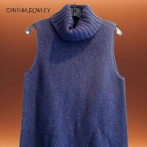 CYNTHIA ROWLEY |NEW| Turtleneck Boucle Trim Sleeveless Speckle Colored Wool Blend Elongated Sweater Top L. An elongated silhouette creates a lean profile in a speckled-knit wool blend pullover featuring a turtleneck, boucle trim, and side slits. See pics for details and the measurements provided below/the Table Chart in the pics to size this sweater.