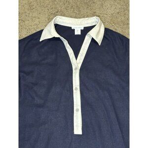 CYNTHIA ROWLEY Navy White Linen Blend 3/4 Sleeve Shirt Dress Beach Coastal SMALL