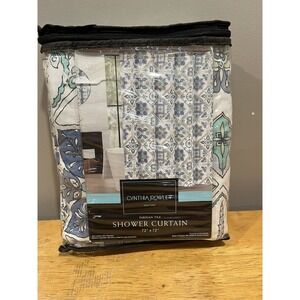 CYNTHIA ROWLEY Parisian Tile Blue Teal Cotton Blend Fabric Shower Curtain 72x72"
