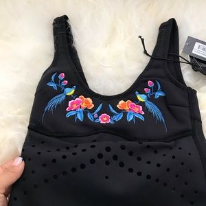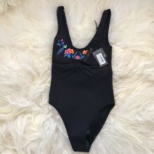 CYNTHIA ROWLEY Racy Embroidered Perforated Swimsui