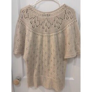 CYNTHIA ROWLEY Short Sleeve Round Neck Cream Eyelet Cardigan Sweater Size L