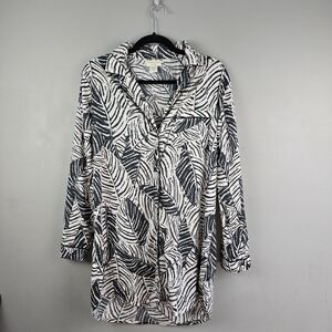 CYNTHIA ROWLEY Sleepwear Palm Print Button-up Nightshirt Black Women’s Size M