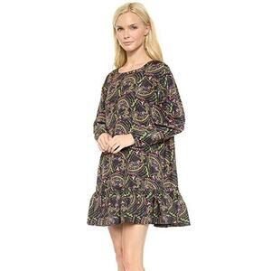 Women's dress by CYNTHIA ROWLEY, this is the designer line not TJ Maxx! Retails apx 350.00. Black, silk, floral, Flounce hem. Size 0, oversized and swingy. Long sleeve, elastic at wrist. Good condition, no stains, holes or pilling.