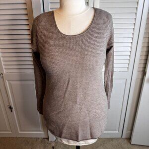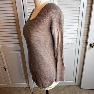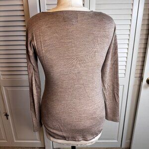 CYNTHIA ROWLEY WOMENS LARGE TAN 100% EXTRA FINE MERINO WOOL LIGHTWEIGHT SWEATER