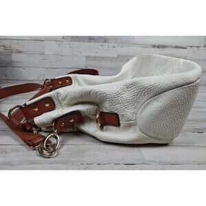 CYNTHIA ROWLEY XL Ivory/Brown Pebbled Leather Convertible Satchel/Shoulder Bag