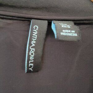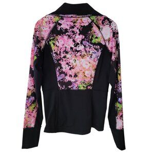 CYNTHIA ROWLEY Zip Up Jacket Black Colorful Artsy Floral Thumbholes Womens Sz M