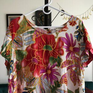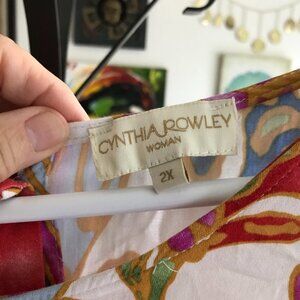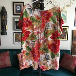 CYNTHIA ROWLEY size 2x Colorful Tropical Floral Print Hi-Lo Button Back Top
