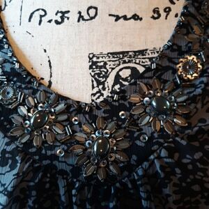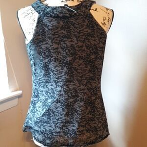 CYNTHIA ROWLEY GREY & BLACK SLEEVELESS BEADED BLOUSE SIZE S