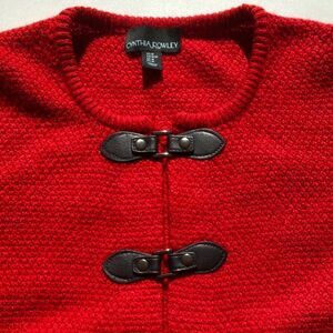 CYNTHIA ROWLEY Medium Buckle Snap Cardigan Sweater Red Vegan Business Casual