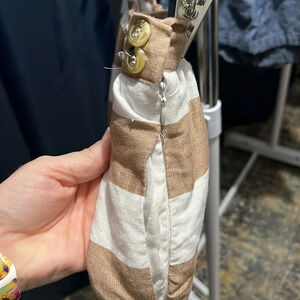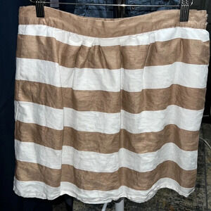 Cynthia Rowley size 8, 100% linen tan and white skirt with pockets side, zipper and buttons.