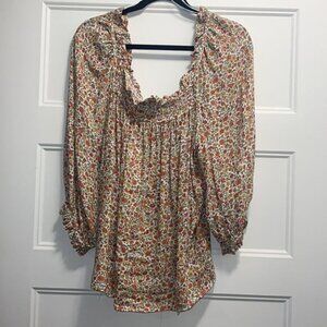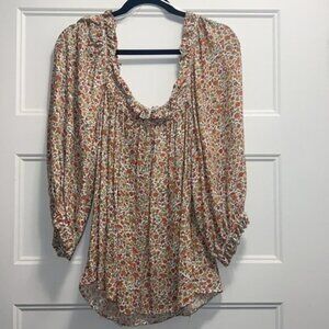 CYNTHIA Rowley pleated floral print off the shoulder blouse size Medium