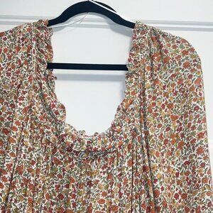 Cynthia Rowley pleated floral print off the shoulder blouse size Medium