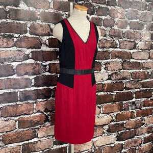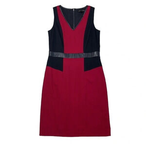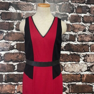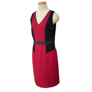 CYNTHIA STEFFE Dress Sheath Red Black Stretchy Faux Leather Trim Size 6