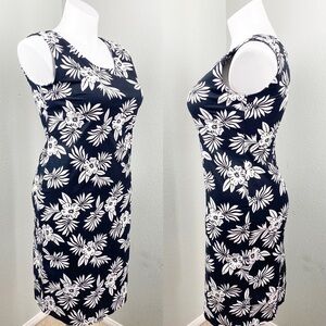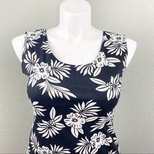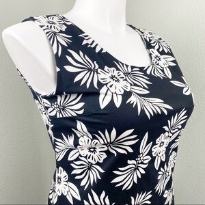 Vintage Cynthia Taylor Hibiscus Monstera Hawaiian Print Short Tank Dress in Black and White. Women’s size medium.