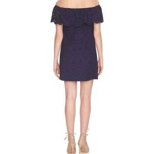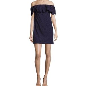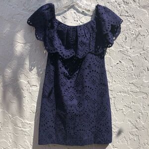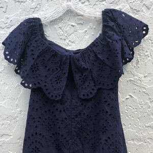 CYNTHIA STEFFE Blue Eyelett Off Shoulder Dress 0