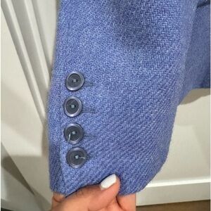 Ladies' Vintage Cyrillus Paris Blue Tweed Wool Herringbone Tailored Jacket Size Eur 36 / 8