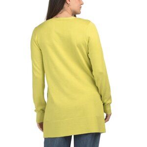 baby ribbed collar, cuffs and hem, knit construction, side slits, tunic style