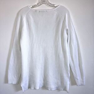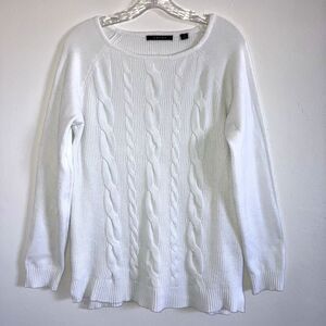 CYRUS L Solid White Cable Ribbed Knit Long Sleeve Tunic Top Sweater Pullover L