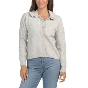 CYRUS Light Grey Wool Blend Ruffle Collar Cardigan