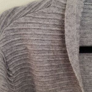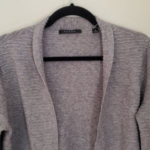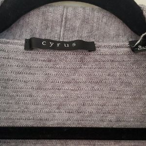 CYRUS Long Ribbed Open Cardigan light weight but warm. Very Soft. I little oversized. Fits more like a medium or oversized small.