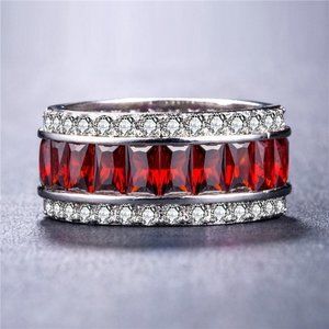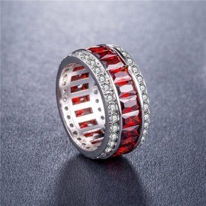 CZ Anillos Red Rectangle Perfect Cut CZ Baguette Crystal Eternity Ring, UNVN12347