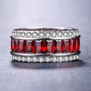 "CZ Anillos Red Rectangle Perfect Cut CZ Baguette Crystal Eternity Ring, UNVN12347