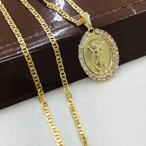 CZ Baby Jesus Necklace Yellow Gold Filled Divino Nino Necklace for Womens 20"