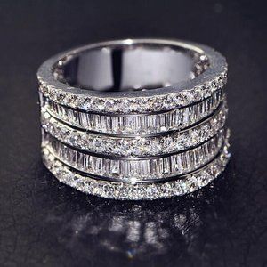 CZ Baguette Statement Ring, Cubic Zirconia Mothers Ring, Cocktail Bling Ring