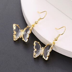 CZ Butterfly Glass Drop Dangle Earrings 925 Sterling Silver Post CZ Gold Plated