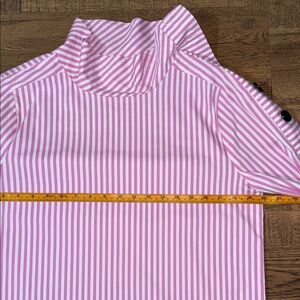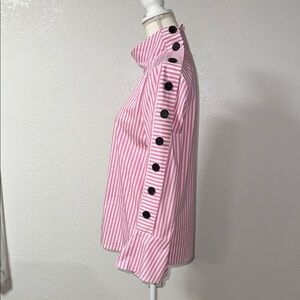 Elevate your style with this chic pink striped top. Featuring a stylish button detail on the sleeves, this top is perfect for any occasion. Enjoy the comfort and elegance it brings to your wardrobe.