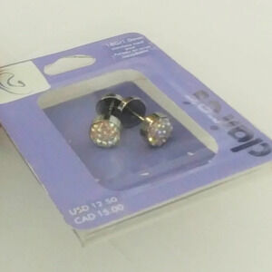 CZ Cartilage Barbell Plugs Earrings Pair. Crew Stud Flat Back. White, pink and green changing stones.