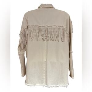CZ Cezele Women’s Small Ivory Denim Shirt Jacket with Silver Stud Trim & Fringe