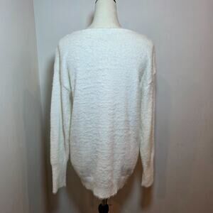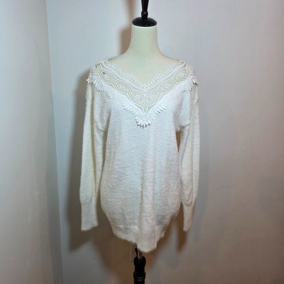 CZ Collection by Cezele Womens Fuzzy Sweater Size S White Lace Oversized Cottage