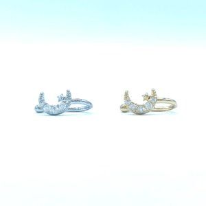 CZ Crescent Moon 24 KT Gold Plated Nose Cuff Fake Nose Rings No Piercing Jewelry