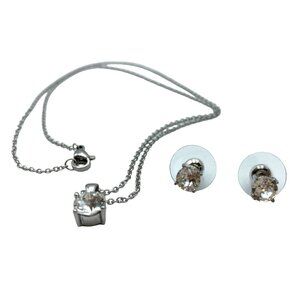 Unbranded CZ Cubic Zirconia Necklace and Earrings Set in silver, clear color. The 20-inch necklace and pierced earrings feature faceted CZ for an elegant sparkle. Ideal for women seeking a stylish pendant look.