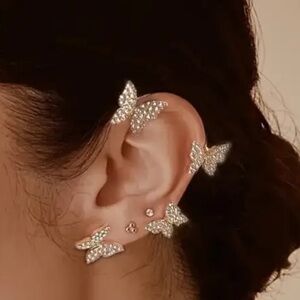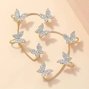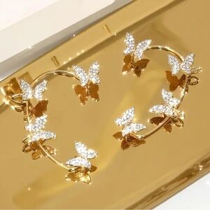 CZ Diamond Butterfly Gold Plated Ear Cuff Earrings Climbers LAST PAIR