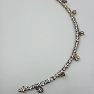 CZ Goldtone 925 Sterling Silver Tennis Bracelet with Dangle Hearts.