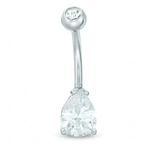 Solid Stainless Steel CZ Pear-Shaped Belly Button Ring - 14G - brand new, never worn.