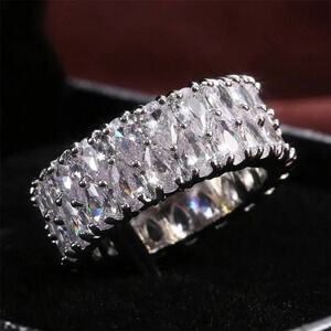 "CZ Perfect Cut Baguette Crystal Cubic Zirconia Fashion Eternity Ring UNVN12098