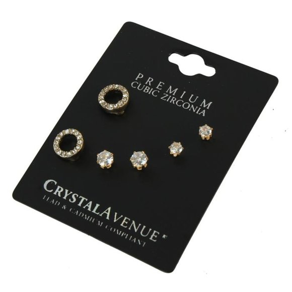 Cubic Zirconia / Round / 3 Pairs of Earring / Stud / Earring / Gold