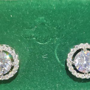 C.Z. Real looking Stud earring with smaller C.Z.'s surrounding the Larger Stone