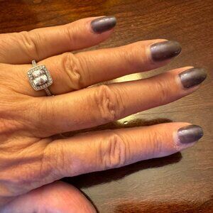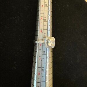 CZ stone surrounded by a halo of CZ chips. The ring setting is stamped 925 (sterling silver).