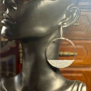 CZ Semicircle Drop Earrings 18KGP NWOT