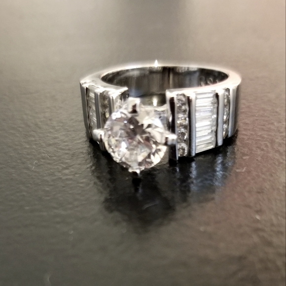 CZ silver plated ring. Brand new, never worn. Would make a great gift.