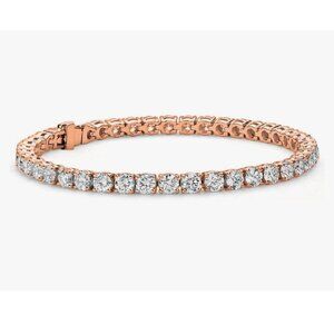 This bracelet showcases a line of radiant cubic zirconia stones set in rose gold plating. It adds a touch of elegance to any ensemble.