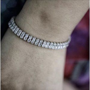 Beautiful, high quality rectangle tennis bracelet featuring baguette cubic zirconia stones. A sophisticated bracelet to add glam to your look!