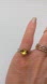 Silver ring with bright yellow CZ topaz in tear drop faceted cut and firm steel or silver plated setting stamped with maker' mark initials on inside of band